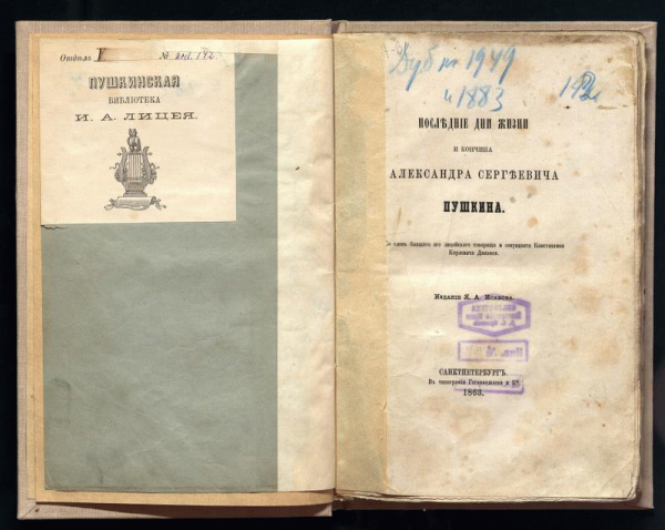 Книга Библиотека Всероссийского музея А. С. Пушкина РКП Пушкиниана ОФ 26242/1537 Нуждается в незначительной реставрации РКП1537